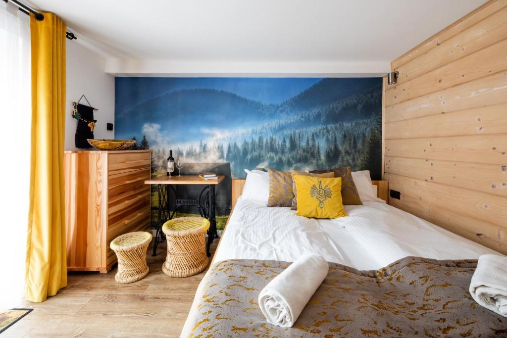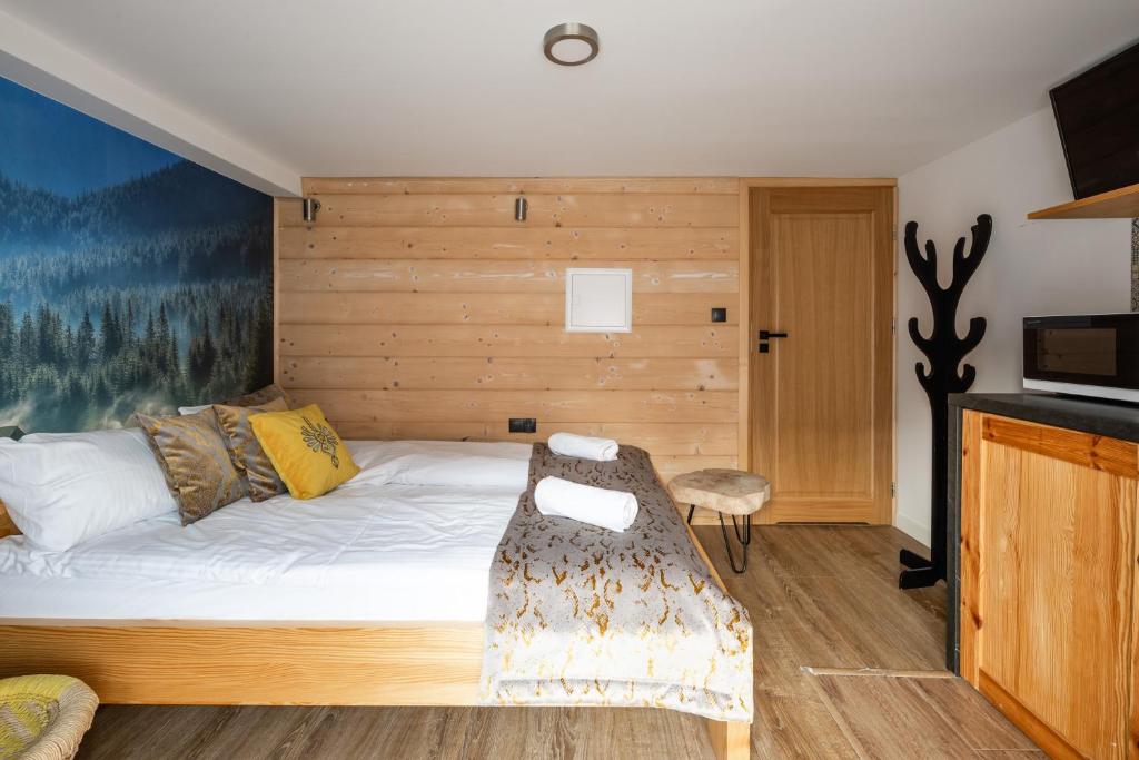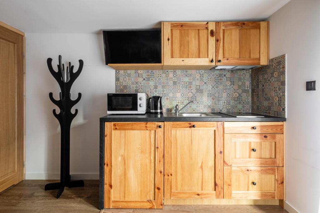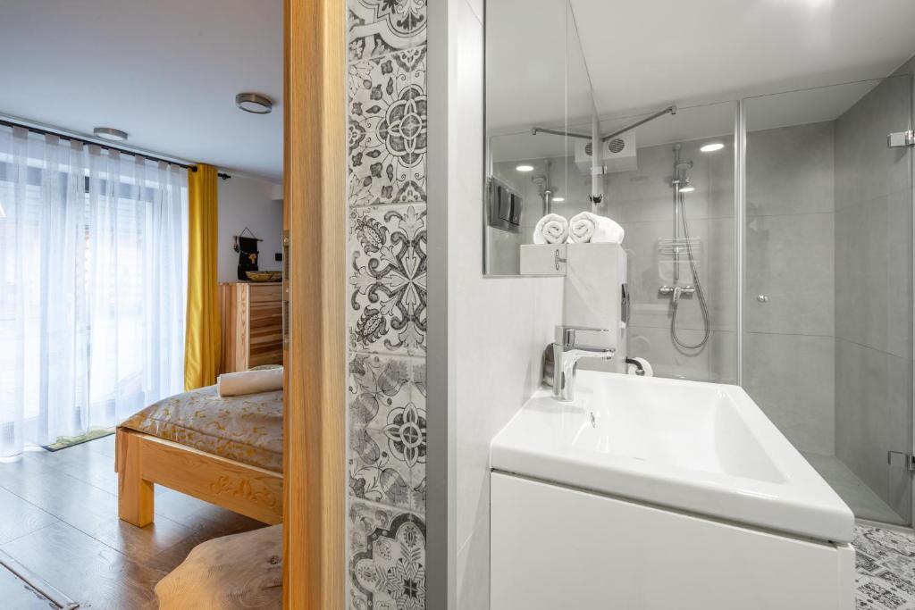 Kameralny apartament dla dwóch osób, idealny na romantyczny lub spokojny wypoczynek. Jasne, przytulne wnętrze utrzymane jest w ciepłych kolorach, a funkcjonalny układ zapewnia wygodę zarówno przy krótkim, jak i dłuższym pobycie.