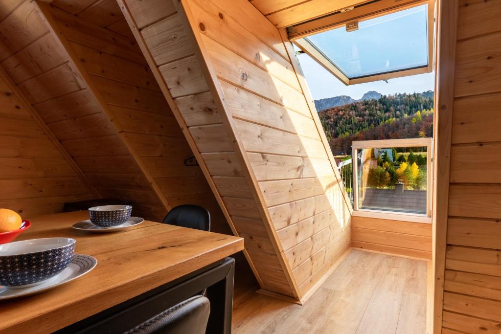 Przytulny apartament dla 4–5 osób z jasnym salonem, antresolą i osobną sypialnią. Naturalne drewno i subtelne góralskie akcenty nadają wnętrzu ciepły charakter. Idealny dla rodzin szukających komfortowej bazy wypadowej.