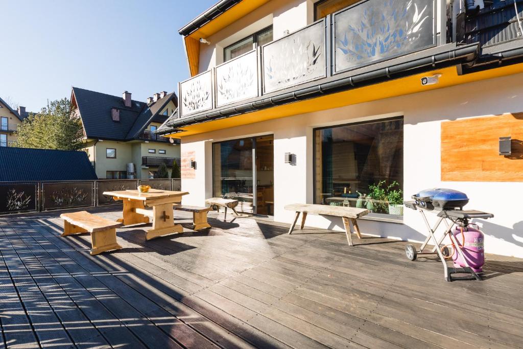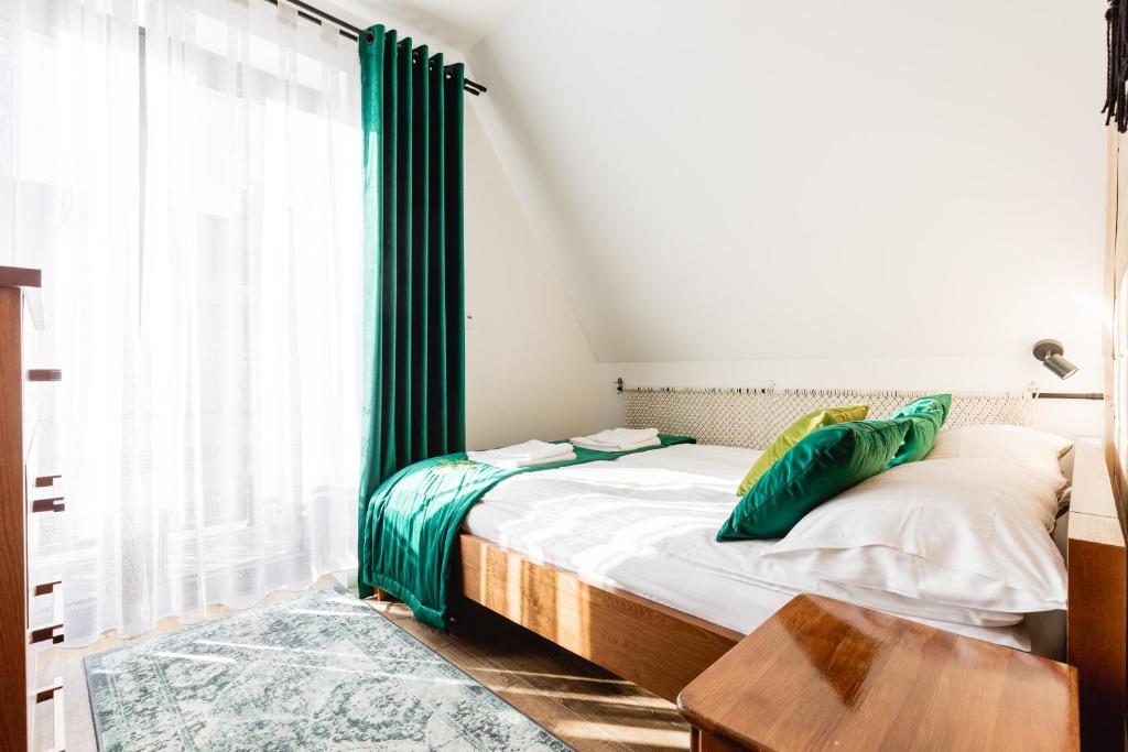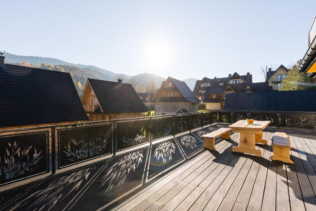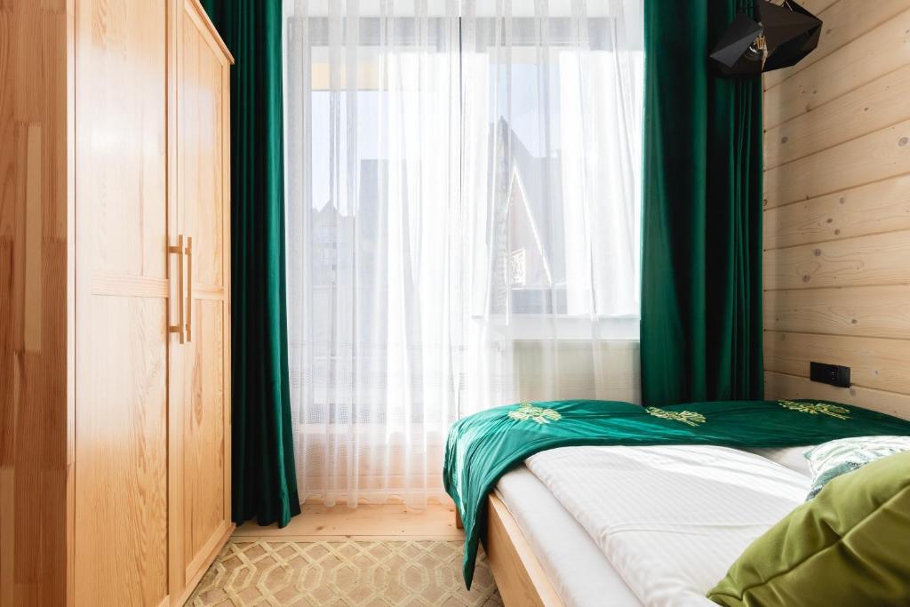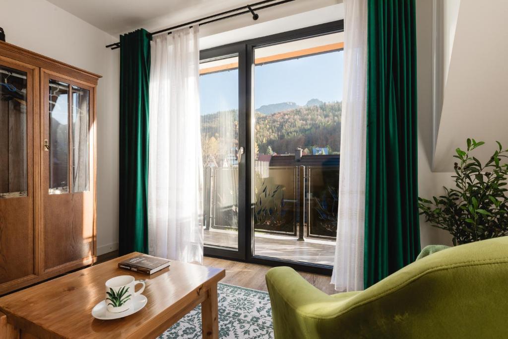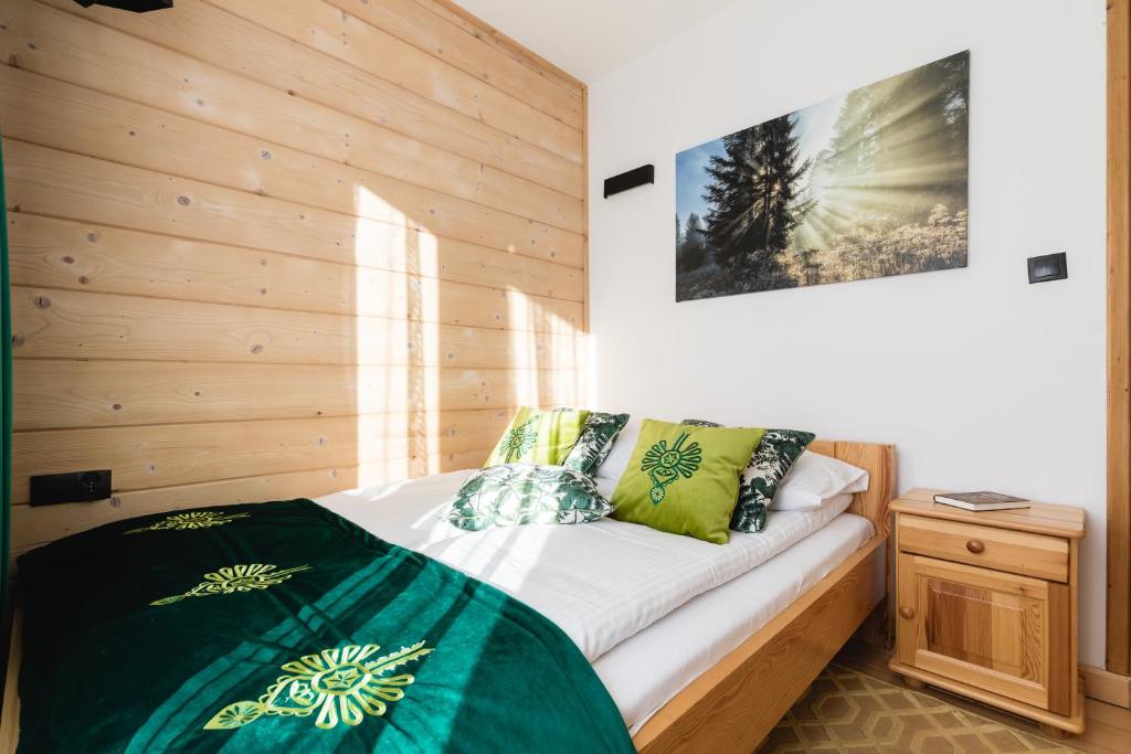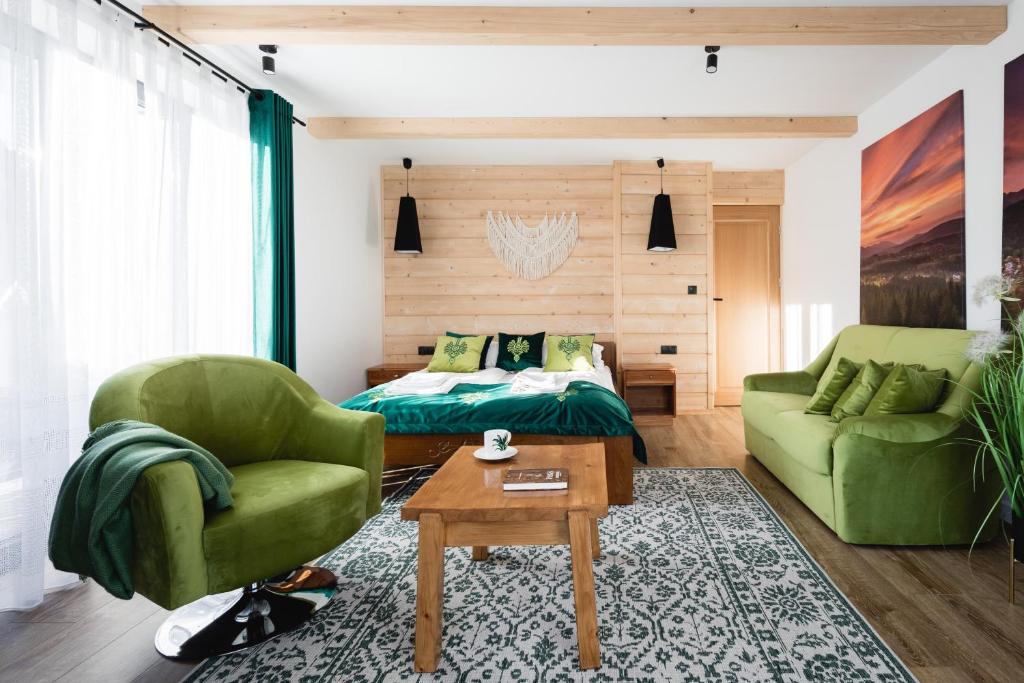 Duży, komfortowy apartament dla maksymalnie ośmiu osób. Trzy sypialnie, dwie łazienki i przestronna część dzienna tworzą doskonałe warunki dla rodzin i grup. Jasne wnętrza, drewniane detale i taras z widokiem na góry podkreślają wyjątkowy klimat miejsca.